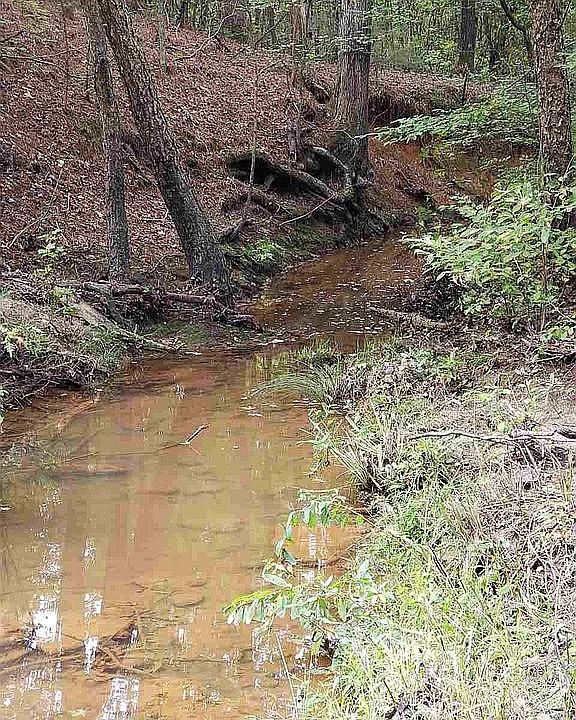 A beautiful, heavily wooded property that gently slopes to a year-round live spring running the entire length of the property.