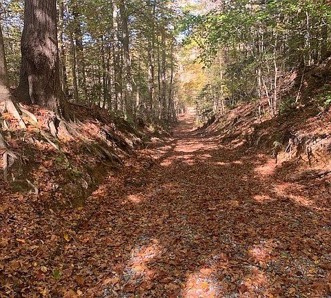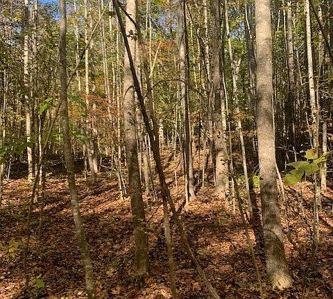 Surface stoneSolid stone baseMature hardwood forestLarge acreageMultiple building sitesMeandering streamsNew all weather road