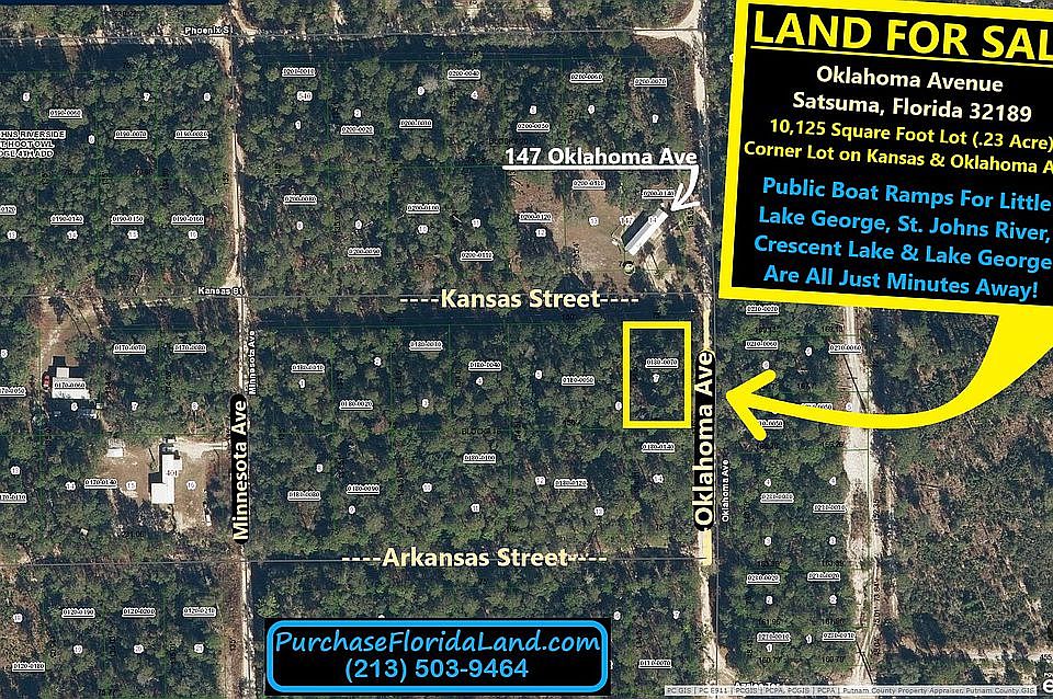 The Lot is on the corner of Kansas St. & Oklahoma Ave, Satsuma, FL 32189 In Putnam County