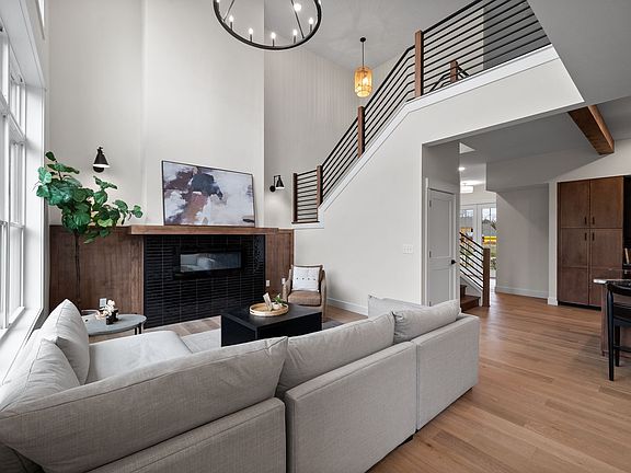 Mudroom with drop zoneDouble ovensEye-catching two-story fireplace