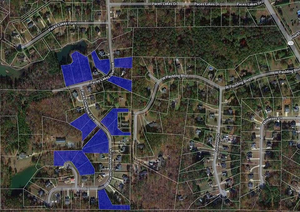 17 Residential Lots in the established Paces Lakes neighborhood south of Dallas, GA near White Oak Park in Paulding County. Individual lots average an approximate half-acre in size and require septic. Lots can be purchased individually or in bulk. Cul-de-sac and waterfront lots on Paces Lakes are available.