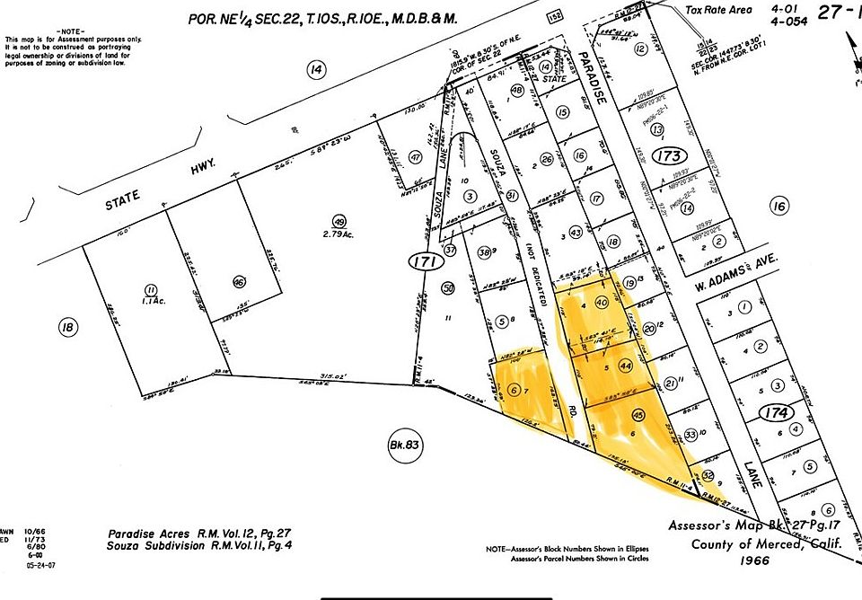 4 parcels totaling 1.2 acres of R3 zoned property. City wants high density housing as many as 41 units per Stacy at The Planning Department at The City of Los Banos. Some engineering done, soils report, and survey. Property on Pachaco Blvd, just east of Paradise Drive, look for sign.