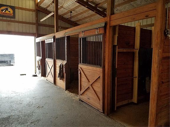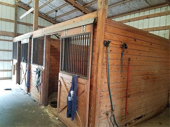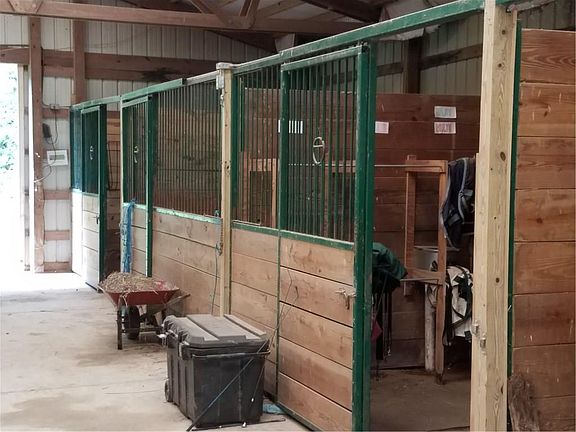 This 23 acre property with level lush pasture, woods and gentle stream, adds to the beauty of this property, ideal for horse boarding and training. Property produces income from the 19 stalls that are leased. Beautiful views, quiet country setting. Convenient location, close to I-575. Current zoning allows construction which is zoned as R40. 2 steel barns, with separate storage for equipment, feed/utilities. Additional features include Quick Drying arena (largest in the area), riding paths and much more! All equipment and non-real property are available for sale.