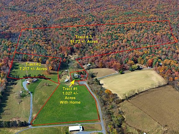 **AUCTION** List price is tax assessment value only. Selling price to be determined at auction. Bidding will start at $50,000. Property will be auctioned by Mountain Valley Auction Group via online-only auction. Online bidding will close at 1 PM ET on January 21, 2026. Property is being sold AS IS and is subject to a 10% buyer's premium pursuant to the terms and conditions. Please visit the Mountain Valley Auction Group website for a full list of auction information, including all terms and conditions. VAF1028. We are offering at online auction 89.964 +/- acres of land with improvements at 285 Paradise Ln Bridgewater VA 22812. This property is zoned GA (general agricultural) and is being offered in three separate tracts of 1.027 acres with the house, a 7.217 acre building lot, and an 81.72 acre tract with fenced pasture and timber. Bidders may bid on individual tracts or combinations of tracts. With magnificent views, mature timber, lots of wildlife, two mountain streams, and a beautifully renovated farmhouse, this property has lots to offer. It is located 9 miles west of Bridgewater VA and approximately a 30 minute drive to either Harrisonburg or Staunton. Tract #2 - This tract is Augusta County Tax Map ID# 4-9E. It is 7.217 +/- acres located at the southeast corner of the property. This tract was designed as a hill top building lot and previous owners had already begun to dig out a basement and had a well drilled, plus put in a shale driveway base. Access to this property a 20 ft wide deeded easement from the cul-de-sac at the end of Paradise Lane. The views from the top of this lot are simply spectacular. You can see Massanutten Peak, Round Hill, Mole Hill, and other Shenandoah Valley features. This lot is wooded in the back and fenced on three sides. The well is 290 ft deep and when it was drilled was reported to have good water and good flow. No pump was ever installed. There is an underground utility easement for Shenandoah Valley Electric around two sides of this property so getting electric service should not be difficult. Current tax assessed value is $103,900 for this tract. This property is in land use which drops the taxable amount to $4,500. If you purchase this tract and do not change its agricultural use you can leave it in land use. If you change the use of the property such as building a house on it then you may be liable for roll back taxes in the amount of approximately $3,600.