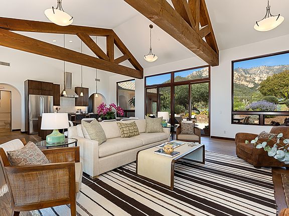 Just minutes from downtown and near the Santa Barbara Botanical Garden, this 14.59-acre retreat offers a tranquil escape with ocean breezes, island views, and mountain backdrops. The 4BR/4BA Spanish-style main home features vaulted ceilings, wood floors, a chef's kitchen, and French doors opening to sunlit patios. A 2BR/2.5BA second residence provides flexibility for guests or income, while a studio/workshop supports creative pursuits. Lovely gardens with room for more and plenty of indoor-outdoor space make it ideal for entertaining.