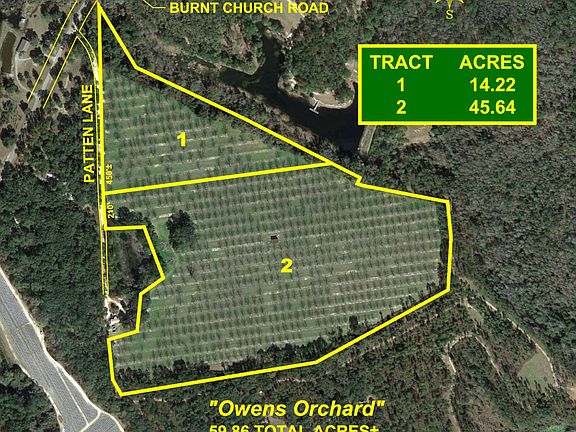 **ONLINE REAL ESTATE AUCTION - Price Determined By Competitive Bidding. Price Disclosed is Starting Bid Price and is NOT a Listing Price.** The Owens Orchard is a beautiful 59± acre pecan grove with exceptional mini-farm and homesite potential in the heart of Lanier County, Georgia. As the sixth offering in the National Pecan Company's auction series, this in-town property is ideal for buyers seeking a smaller-scale orchard, investment tract, or homesite with agricultural income. Offered in 2 tracts, the Owens Orchard includes 45± planted acres of Pawnee, Cape Fear, and Huffman (pollinator) pecan varieties. The orchard is supported by an 6" electric deep well with two-zone irrigation (drip and emitters), along with professionally engineered drainage for optimal water management. With wooded uplands, well maintained dirt road frontage on Patten Lane, and proximity to local amenities, this property combines agricultural value with long-term development appeal. Offered in 2 tracts, buyers can bid on a single parcel or the entire farm.