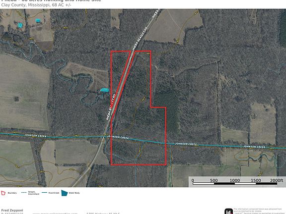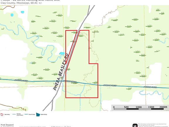 68± acres in Pheba, Clay County, MS offering excellent hunting, timber, and home site potential. The property is entirely wooded with a mix of pine and hardwood and features Johnson Creek frontage, providing water and natural travel corridors for wildlife. Trophy deer, turkey, and small game are abundant, and the land is mostly flat with significant portions in the floodplain, yet with ample high ground for a home, cabin, or camp. The tract is split by Pheba-Beasley Road with ~7 acres west and ~61 acres east, offering extensive paved frontage and access to power, community water, and fiber internet. Minimal interior roads allow you to design improvements to fit your needs. Subject to an easement granting ingress/egress to adjoining land to the east.
