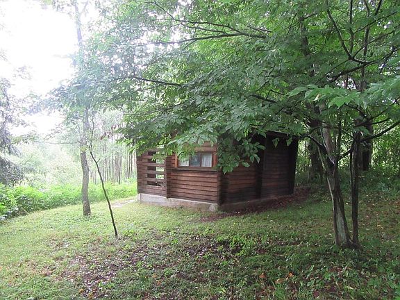 Great potential. 12x 14 small cabin with a pole barn. Underground electric to the pole building 24x32 which has a wood stove in it. A storage shed for the lawn mower and another little building which could easily be made into a play house. Also,a pond. Bring your plans to build or spend the weekends hunting, hiking and oh yes access across the road which is part of the property for fishing.