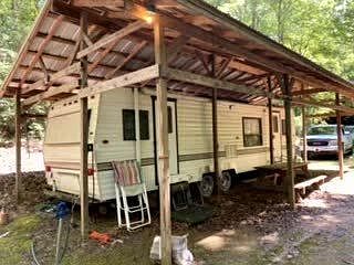Enjoy a little slice of everything Appalachia has to offer with this 5.02 acre private getaway. When you enter the property, you'll follow a private path to a camper covered by a well-built pavilion and hooked up to electricity, offering the perfect recreation area. The camper and building will stay with the property. The trees surrounding have been cleared to offer maximum enjoyment of the property. Just past the recreation area, you'll find a natural spring and pumphouse that have been the source of the property's water for years. In the middle of the property, there has been a place previously excavated for building a home with a basement. Just beyond this, you'll have access to a peaceful babbling brook that winds through the property. It doesn't get much more secluded than this!