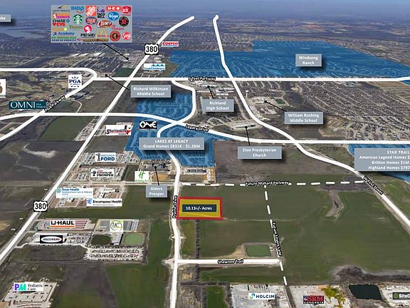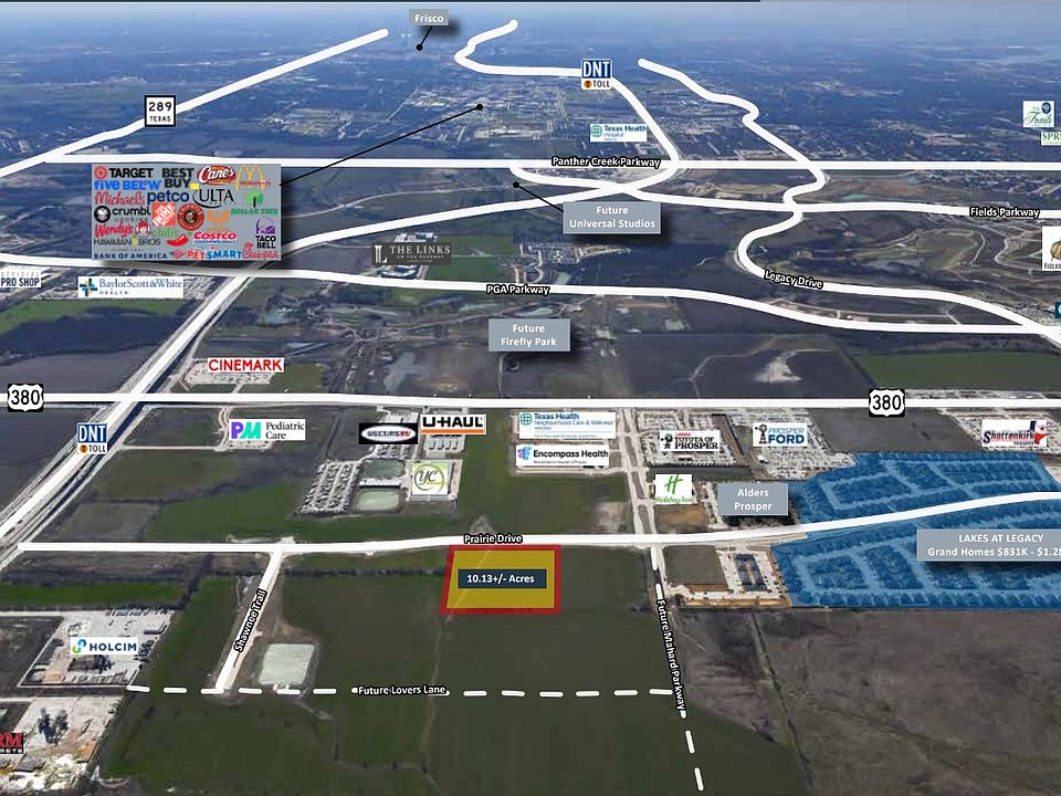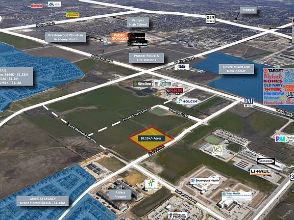 Vanguard Real Estate Advisors (“VREA”) is pleased to present qualified investors and developers the opportunity to acquire two parcels totaling 10.13+- acres located along Prairie Drive in the rapidly growing city of Prosper, Texas. Currently zoned under PD-71, the Site is approved for residential development; however, its strategic location with direct frontage on Prairie Drive offers exceptional visibility and accessibility; positioning it as an excellent candidate for commercial rezoning. This Site is situated in the heart of Prosper’s thriving economic landscape, surrounded by newly constructed retail spaces, residential developments, and expanding employment centers. The area’s dynamic growth makes this Site a highly desirable investment and well suited for commercial development. The location, combined with its development potential, makes this an ideal prospect for forward-thinking investors and developers. The Seller will consider subdividing the Site dependent on business terms.