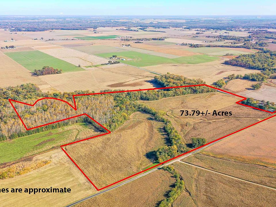 73.79 +/- Acres - New Athens, IL Farmland - Hunting - CRP - Homesite Online Only Auction (Sells in one tract) Auction ends: December 1st @ 6:30PM Property Viewing: November 15th @ 8:00-10:00AM Location: Probst rd and state route 156 - New Athens, IL Property consist of farmland being approximately 45.32 tillable acres (2026 possession of tillable acres will be available to buyer) 14.90 acres of crp ground with a contract until 9-30-34 paying $2190.00 per year. Balance of land is wooded with Richland creek boarding the east side of the property. This makes for a great investment property along with hunting/recreational use and possible homesite. Based on information provided by seller the cropland is class lll and lV. Current tax bill is $1474.20 and is in new Athens school district unit 60. Terms- $25,000 down upon signing contract, balance in approximate 30 days upon closing. Buyer to pay a 3% buyer premium. Owner has right to reject any or all bids This listing is an auction, The price listed is the starting bid.
