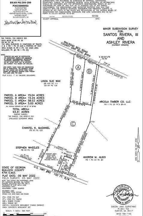 Two 15+ Acre Tracts in Brooklet for a total of 30.28 acres. – Prime Location- Ideal Building Site with Loblolly Pines. Don’t miss this rare opportunity to own two beautiful 15-acre tracts in the desirable Brooklet area! Zoned Ag-5 these parcels offer a perfect blend of accessibility, privacy, and natural beauty. Each tract is planted in 5+year Loblolly pines, creating a scenic and serene setting ideal for a homesite, recreational use, or investment. With level terrain and about 800+ feet of road frontage combined on Railroad Bed Road, these tracts offer multiple great building sites and easy access to utilities. Whether you're looking to build your dream home, start a small farm, or invest in quality land in a growing area, these properties check all the boxes.