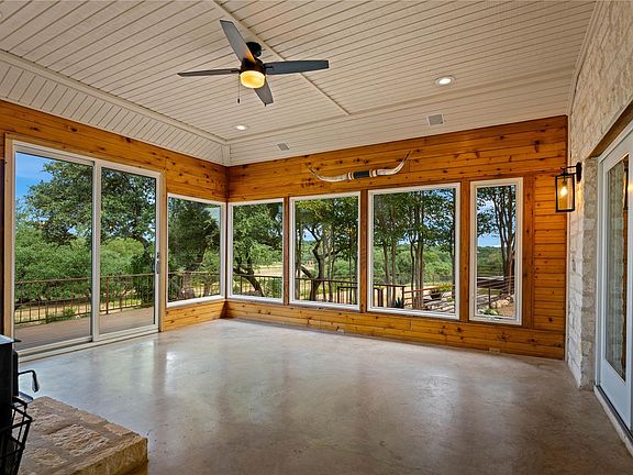 Sparkling poolStone fireplaceWood-burning stoveHot tubHill country viewsOutdoor kitchenLarge sunroom