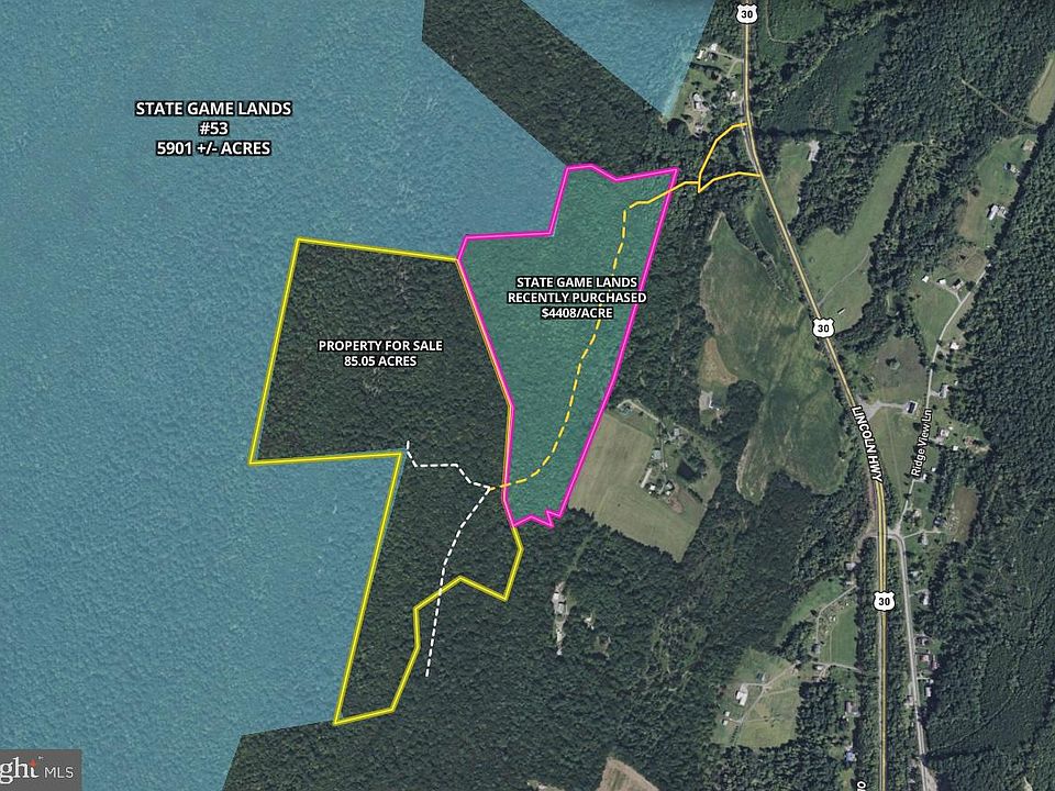**BACK ON THE MARKET. BUYER HAD PERSONAL MATTER THAT TOOK PRIORITY. NO FAULT TO SELLER** This 85.05± acre property in Ayr Township, Fulton County, offers an exceptional opportunity for hunters, investors, and outdoor enthusiasts alike. Situated just outside McConnellsburg, the property directly borders State Game Lands #53 and features private right-of-way access at the end of Ramsay Lane. The land has a strong history of wildlife activity, with abundant of large whitetail buck sign and a known presence of morel mushrooms. The terrain is diverse and dynamic, with a mixture of low inclines, benches, small section of steeper slope, and flat top ridges—ideal for both strategic hunting and recreational use. Timber value is present throughout, with a healthy stand of white and black oaks, several of which offer notable quality and harvest potential with a healthy acorn crop. Two natural springs are located on the property, providing reliable water sources for wildlife as well as potential future development such as a cabin or off-grid retreat. The property lies adjacent to a recently purchased State Game Lands tract, which sold at $4,408 per acre, reinforcing the value of this offering at $3,700/acre. Conveniently located near McConnellsburg, this surveyed tract offers both seclusion and accessibility. Whether you're looking to invest in land, build a recreational getaway, or simply enjoy the outdoors, this property is well-positioned for long-term enjoyment and value.