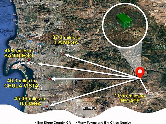 This remarkable 1.67 Acres property adjacent to the Cleveland National Forest, Otay Mountain Wilderness, and San Diego Safari Zoo, and with nearby access to Highway 94 offers numerous advantages, convenience, and diverse investment opportunities. The region's natural beauty, thriving tourism industry, and strategic location make it an enticing prospect for both short-term and long-term growth. You can reach at Picnic Lake Park and shopping center within 10 minutes.