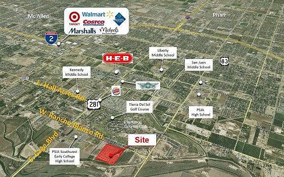 22.94 net acres of land in south Pharr, TX located on East Rancho Blanco Road, just south of Plantation Country Club. This tract is one of the few remaining 20+ acre tracts in south Pharr before reaching the flood way that separates South Pharr and Las Milpas and the International Bridge Industrial area. This property sits between Pharr's newest high school, Southwest High School, and the Pharr Rifle & Pistol Club. Depending on City of Pharr buffering requirements due to it's gun club neighbor, this property could be used for municipal and governmental uses, industrial or commercial uses, or potentially multifamily uses.