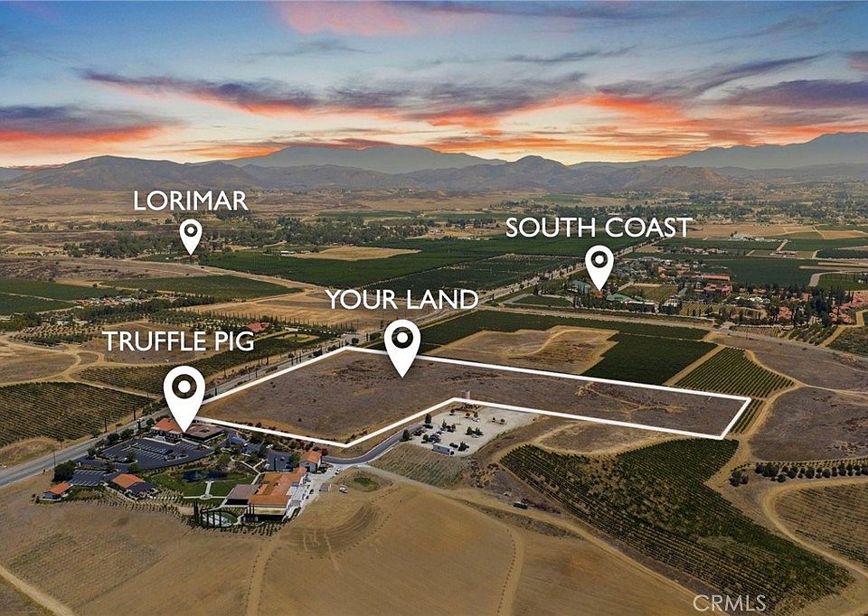 Incredible opportunity to develop a premiere Winery in the heart of the Temecula Wine Country with this approved plan for approximately 38,000 square feet, which includes a Winery, Restaurant, Tasting Room, Special Event Facility, Administrative Offices, and a private residencee of 5,282 SF! The existing approvals will save years of processing!! The property is located directly on Rancho California Road - Just west of Anza Road, offering excellent visibility and access. The parcel offers 360 degree views - and is very gentle, requiring minimal grading which will save on development costs! Close to South Coast Winery, Truffle Pig Winery, Lorimar Winery and Ultimate Winery - the location is second to none!