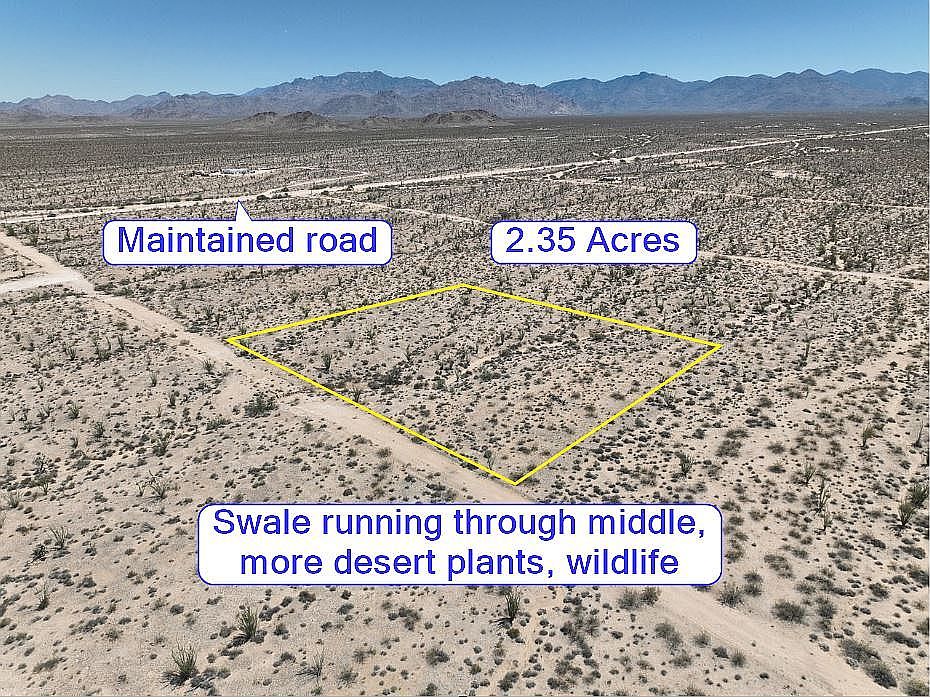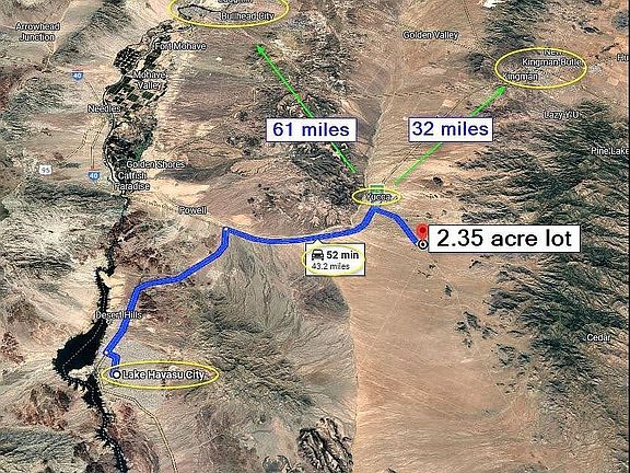 2.35 acre lot conveniently located 1.4 miles from the newly paved County Highway 15 (Alamo Rd) giving the owner paved road access the majority of the way from Interstate 40 located 8 miles away. There are no swales or washes to cross over to reach the land. This property is zoned AR Agricultural Residential, it's not in a flood zone, has no HOA, and it's near the Hualapai Mountains surrounded by public land, hiking and off-roading trails around beautiful mountain and desert scenery. RV and travel trailers are allowed with a special permit and septic installation for full time placement. You can haul water or drill a well and add solar and battery backup and a septic system and place a manufactured home or tiny home, build a barndominium or other assembled permitted structures for a full time residence, rental, or weekend getaway. Or this is a great location to park an RV or travel trailer for weekend camping. The Pilot Travel Center is 8 miles away and has gas, a market and Subway. Don Guthrie Services Center is 8 miles away and they deliver water, install septic systems and have a water station for onsite pickup.