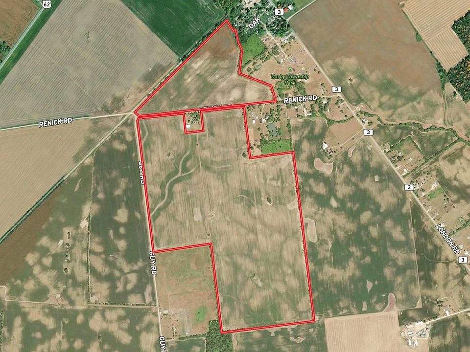 229 acres of vacant land with 223 acres tillable. Highly productive grain farm with 55% Kokomo soil. Topography is level. 6,435 ft. total road frontage on Renick Road and Guy Road. Excellent location in Derby Township, Orient, OH.