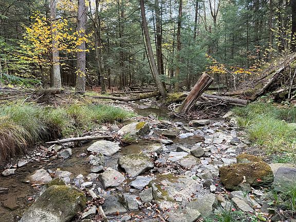 Discover a truly spectacular recreational property that borders the picturesque Rhine Run, offering a peaceful setting and year-round natural beauty. Perched along the stream sits a dry, unfinished hunter's cabin with nice views of the water. The stream bank beside the cabin provides an ideal picnic or gathering spot-perfect for relaxing with friends and family. The cabin is currently unfinished, giving you the opportunity to complete it to your exact style and needs. Across the road lies the majority of the acreage-a gently sloping hillside covered with beautiful hemlocks and mid-aged hardwoods. The hardwood timber is mostly young to mid-aged, but it offers strong future income potential. A trail system winds up through the property and simply needs general trimming to open it back up for easy access. A spring flows down the hillside through the acreage, creating scenic views and a peaceful, natural setting that's great for hiking, exploring, or relaxing outdoors. Conveniently located just a short commute from North Warren, the property provides quick access to shopping, dining, and other amenities while still feeling remote and private. The property currently has no utilities in place and electricity is available a short distance up the road. Whether you're looking for an excellent deer hunting property, a quiet getaway, or a place to create lasting memories with family and friends, this unique parcel offers it all. All sellers owned rights will convey with the sale. All buyers must be accompanied by their agent for showings. Please reach out to the listing agent with additional questions or to schedule your private tour.