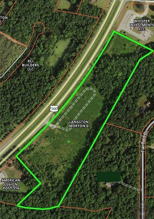 ZONED B-2 +/- 14 acres with fantastic Rt 360 frontage. Decel lane of of Rt 360 and a 50 ft right of way from Mill Rd. So much potential. Well and septic ( believed conventional) from previous on site business. No warranties. Property sold AS IS WHERE IS. Buyer should do due diligence prior to or make offer subject to reasonable feasibility study period to determine if suitable for desired use.