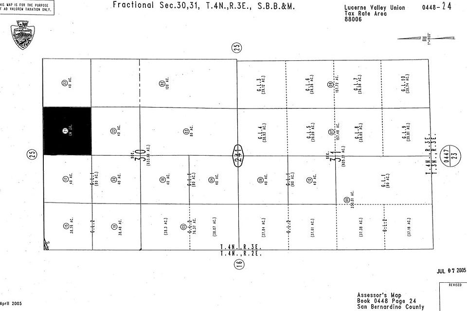 Land for sale in Lucerne Valley, San Bernardino California. This could be the ideal location to get away from the city crowd and experience rural living and open spaces. 40 acres flat/level lot with rural living land for sale now in Lucerne Valley just south of Bessemer Mine Road. Enjoy the beautiful sunrise, sunsets and starlit skies at night. This lot is close to paved Old Woman Springs Road (Highway 247),(just a couple lots in) and only minutes from the center of town and it's located south of Dry Soggy Lake and west of Johnson Valley. This may have the room to build or to bring the toys to your private desert playground. Parcel number is 0448-241-21-0000. Latitude and longitude coordinates are: 34.410822,-116.707195