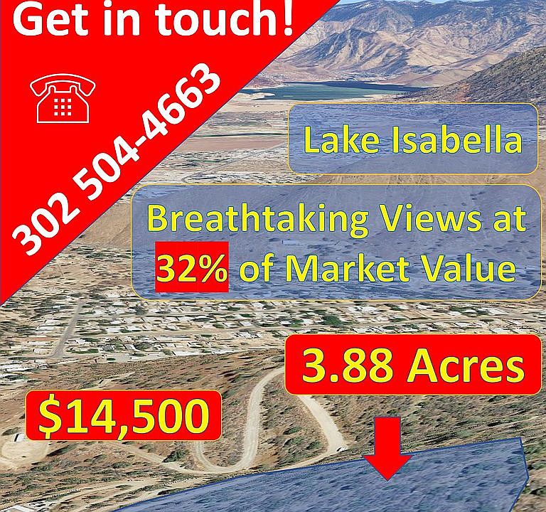 ENJOY BREATHTAKING VIEWS FROM YOUR OWN PROPERTY IN BODFISH, LAKE ISABELLA This is the Deal you’ve been waiting for Worth $45,000 Selling at 32% of Market Value Whether you’re looking for a holiday home, a place for weekend outdoor fun or a dream home, this unique piece of land offers it all. Overlooking, Kern River Valley, Lake Isabella and countless spectacular mountain chains, this is the perfect getaway from hustling city life. Check it out and feel the peaceful atmosphere this land has to offer! The property is conveniently located just outside Lake Isabella, where schools, medical services, shops and restaurants offer the amenities you may wish to have nearby. It’s unbelievable but true! Here is the piece of land you have been waiting for. Get in touch and check it out! We can only sell it once! Property Summary An incredible 3.88 acre lot in Bodfish, Lake Isabella, CA which would make the perfect building lot for a holiday home. This lot has the building potential for a dream home! We are offering this property at a discounted ROCK BOTTOM cash price so that one lucky buyer can own the perfect property at a well BELOW MARKET price. Property Value The Market Value for the BEAUTIFUL lot is a minimum $45,000. Based on recent property Sales in the area. We offer this property for only $14,500 that saves $30,500!!! Property Details ? APN: 300-130-06-00-3 ? Property type: Buildable, residential, single family lot ? Zoning: E(1)MH – MHs conditional allowance, RVs and camping allowed ? County: Kern ? Property Address: 0 Rim Rd, Bodfish, CA, 93205 ? GPS Coordinates (Approximate Center): 35.5832, -118.4906 ? City: Bodfish ? Zip: 93205 ? Acres: 3.88 acres ? Square Feet: 169,013 ? Topography: rolling hills to sloping ? Nearest Cities or Subdivisions: ? Lake Isabella ? Bakersfield ? Inyokern ? Annual Taxes: $171.89 (2019) Utilities ? Power: powerlines at property (Canyon Electric) ? Water: contact Canyon Meadows Water ? Sewer: septic system can be installed Purchase Options Cash Price: $14,500 We are currently offering this property at a rock bottom cash price of $14,500. This is the deal of a lifetime, don’t miss out on this great opportunity! Contact us for Seller Financing options! Local Amenities Local Schools Include: (10 min from property) ? Woodrow W Wallace Elementary School ? Woodrow W Wallace Middle School ? Kern Valley High School Closest Grocery Stores: ? Country Korner Market (5 min) ? Bodfish Market (5 min) ? Vons (10 min) Local Restaurants: ? Don Sombrero Mexican (5 min) ? Neldas’s Diner (10 min) ? Little Caesars Pizza (10 min) Local Attractions: ? Scovern Hot Springs (10 min) ? Kern County Parks and Rec. (15 min) ? Alta Sierra Ski Resort (25 min) READY TO BUY OR HAVE QUESTIONS? Purchasing property from us is simple and easy. We have closed hundreds of real estate transactions and know the process well. We always use a 3rd party title company to make sure our buyers are protected and ensure title is free and clear. Message us here or call us today to get started. Disclaimer Buyer is responsible for verifying all information with the County as to what can and can't be done with the property. Buyer will need to work with the County to obtain the proper permits if needed. Buyer will also need to confirm the availability of any utilities needed or serviced on the property. Seller makes no warranties or representations about the land, its condition, or what can be built on the property.