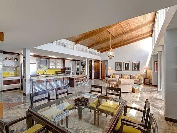 Prop ID 5151 Rio Grande. Completed in 2006, this modern country retreat in one of the world's most remarkable tropical rainforests was designed to blend in with the flora and fauna of the five acres it sits within. On the first level you will find an open-concept kitchen/dining/living area, master bedroom featuring an en-suite bath and a sizable covered terrace with ocean views. Chirping of birds, light rainfall and the calming sounds of the coqui will be your constant companions. The second level features four bedrooms, one bathroom and a den or entertainment room. The gazebo is perfect for entertaining friends and family as well. A spacious sun deck on the rooftop of the home provides expansive ocean views. Parking for up to 15 vehicles is also conveniently available. El Yunque is the biggest rainforest in the Caribbean and features 240 species of plant life. It is approximately 28,000 acres, one of the largest peaks standing at 1,080 meters above sea level..