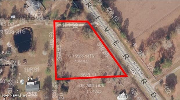 Property has been subdivided from another lot as shown on survey. Parcel is fenced in and can add access from the right gravel path or just use current access from gate at address: 4831 RIVER RD HILLIARD 32046
