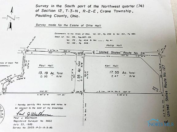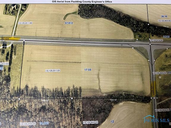 17.55 Acre tract at the corner of US 127 & RD 424. Some trees along the South line. Possession as growing crop is harvested. You decide the best use of this parcel. Might you divide into 5 Acre Building plots. Plenty room for huge pond and your beautiful new home! Could it be a great corner for your business? Just 1/2 mile to new US 24. Midway between IN/OH State line & Defiance, OH