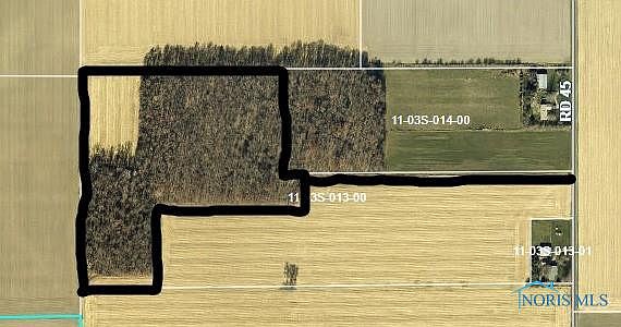 Secluded Country Setting in Antwerp School District! Newly surveyed 23.522 parcel consisting of 19.522 recreational woods & 4 acre buildable or tillable clearing near the Paulding-Defiance County Line! With a nice population of mature oak, maple & walnut trees, this is a beautiful property offering peace & privacy to the nature lover. The new parcel will be a division of parcel #11-03S-013-00; upon transfer to the new owner, a new parcel ID will be assigned & taxes redetermined. A 40' access ingress & egress easement will be located off CR 45.