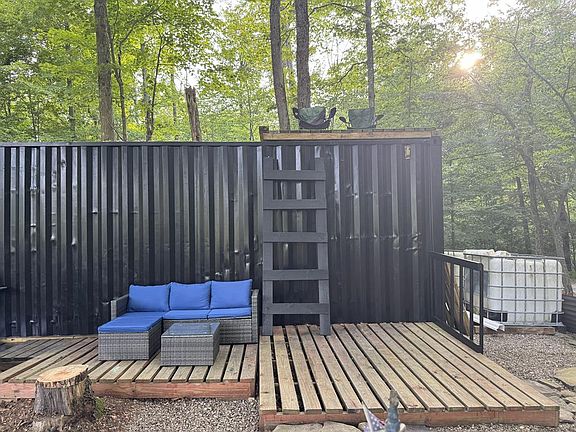 Located off Roaring Run Road and Congdon Road in Gillett, PA, this peaceful 3+ acre wooded property is designed as the perfect off-the-grid camping retreat. A storage container converted into a cabin provides rustic shelter, complemented by a water reservoir system for added convenience. Custom natural stone walkways guide you through the property to a scenic stream with a refreshing swimming hole, all beautifully landscaped to enhance the outdoor experience. An overhead shelter deck offers an ideal spot for relaxing and stargazing, making this a truly serene getaway.