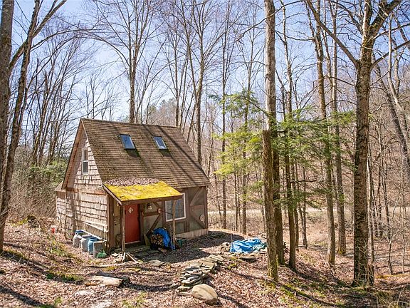 Hansel and Gretel’s cabin in the woods! There are so many charming aspects to this secluded cabin. The sound of the stream is like liquid valium. This same stream happens to run through the start of the private road, acting like your own private moat! Bluestone siding on the front, cedar shake shingles on the back. Vaulted ceilings and skylights give the two upstairs bedrooms a bright spacious feel. The wood stove in the middle of the house will heat the entire house. Currently used as a seasonal cabin, this property is strictly for people looking for a simple, peaceful retreat. The stone floors and thick beams give the interior a classic cabin feel. Close to the Cannonsville Reservoir, there are amazing opportunities to fish, hike, and boat in all directions. This is the real country experience, are you ready for it?