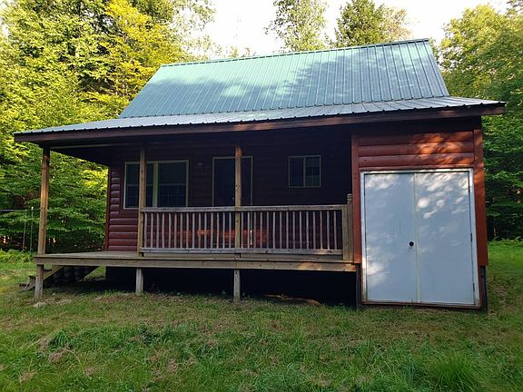 (Continuing to Show this property) Secluded for privacy and peaceful nature, off the grid living - a feeling of freedom, this retreat offers a really special location, set well back from the road with borders on two sides to Long Pond State Forest, 3254 acres of state land, including two lakes, literally at the new owners disposal to explore and hunt as well. A beautiful solid built cabin, frame built with "log" siding, features tongue and groove knotty pine walls/ceiling and hardwood floors throughout, custom kitchen floor made of slate gathered from the property and granite counters in the kitchen, bright and open dining/living room area, main floor master bedroom, and full bathroom with bathtub for soaking after a day of outdoor fun. The cabin is wired for electric, ceiling fans with lights in each room, Anderson tilt windows for easy cleaning, all with screens, and a covered front and large back porch. There is a large open loft area for additional sleeping accommodations for multiple beds. The camp also features a well, septic and poured concrete, full concrete floor basement with stairs leading to double door access to outside (big enough for a 4-wheeler, providing great storage including large items), and oversized reserve tank. The building comes with its own generator and propane tanks that are set well away from the camp so the campsite is pristine. Per owner, the building measures 910 square feet, even though tax records indicate 500sf. Gated entrance for privacy and security, access to the camp is provided by a driveway leading right up to the building with plenty of surrounding parking space. The property has a mixture of hard and soft woods including Maple, Ash, Cherry and Hemlock primarily. Recently moderate timber harvest has cleared out nice access trails for ATV's and hiking and possible shooting lanes. Well-managed timber such as with this property provides income opportunity for the new owner with future harvests as well. Further, as the property was very heavily wooded, this logging has opened up the forest for new growth, providing instant feed for deer to browse and subsequent years of growth will result in lush undergrowth improving the quality of the land and wildlife habitat even more. Deer sign was abundant with a lot of deer tracks on the trails. There is a wetter swamp like area that consists of a lot of fern and cover that whitetail are drawn to and bed down in, making this spot a great location to hunt or enjoy any number of wildlife or outdoor activities. Property directly adjoins on two sides with the 3254 acre Long Pond State Forest, which has a 117 acre Lake and 28 acre lake offering fishing for largemouth bass, tiger muskies and pickerel among other species and also offers four miles of snowmobiling trails, hiking, horseback riding and hunting. If there weren't enough, Dorchester Park is 10 minutes away with a public beach and public boat launch on the Whitney Point Reservoir, a 1200 acre lake with outstanding fishing for pike, bass and panfish as well as general boating and water recreation. This very secluded location is still only minutes away from so many outstanding amenities in the Binghamton, Cortland, Oneonta, and surrounding areas, highlights include area colleges, multiple state parks, lakes with public beaches and boat launches, baseball venues, museums, cultural and performing arts, hiking, fishing, boating, snowmobiling and many different culinary delights with everything from high-end restaurants to micro-breweries to family-style eateries. . This is a unique opportunity to own a gorgeous retreat in a private setting with adjoining NYS Lands at the new owners disposal. **Buyer(s) with a fully executed Sales Contract may hunt this property prior to final closing date with Sellers prior approval**