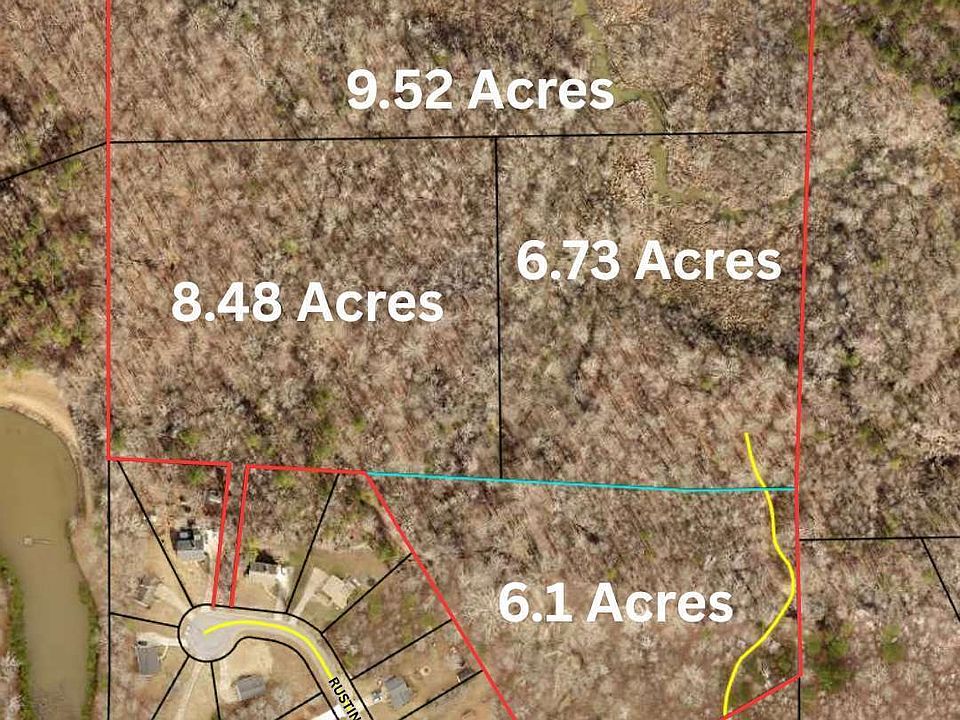 Vacant land consisting of 4 parcels totaling 30.83 acres. Land is behind Bridal Creel Subdivision with 30 foot entrance in cul-de-sac at end of Rusting Dr. in subdivision. All four parcels must be sold together. The owner will not split the properties. Acreage on sign is incorrect. Acreage is 30.83 acres.
