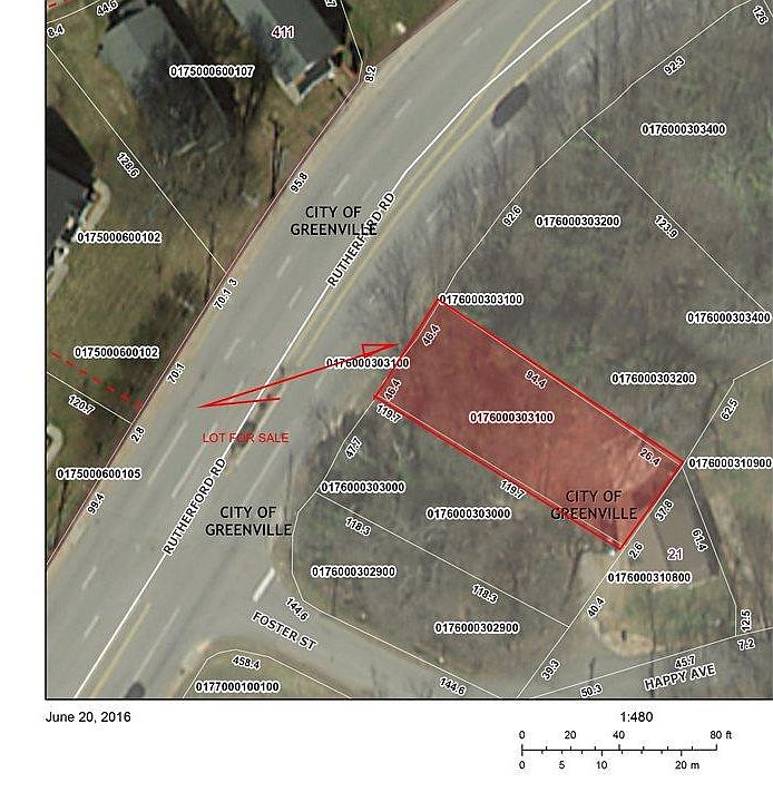 Vacant lot fronting on Rutherford road near downtown Greenville. Property is fronted with city-maintained sidewalk on landscaped corridor just outside of downtown. Driveway cuts already in place. Possible town-home above office, or specialty shop location.