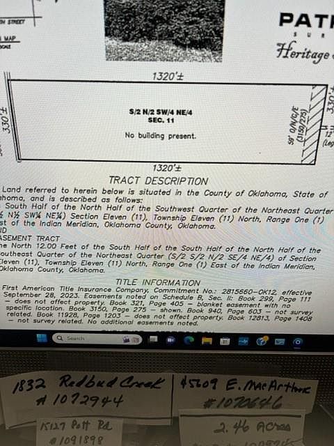 Entered as a comp only. 9.97 acres was split off from the parent parcel of 15.81 acres. Has a pond and mature trees. Fronts on Midway Drive and has a driveway easement coming in from S. Harrah Rd. Sellers sold this land with deed restrictions.