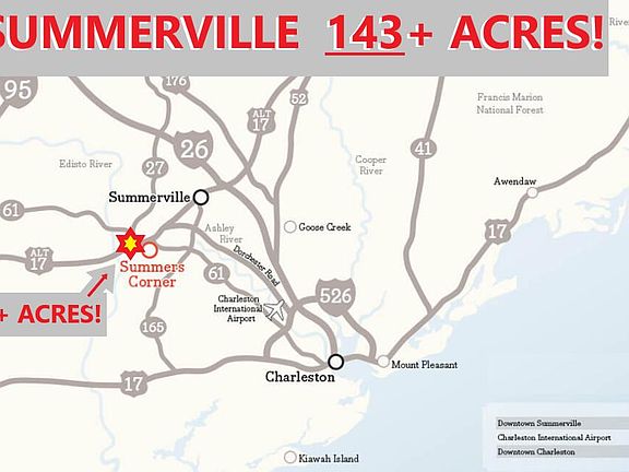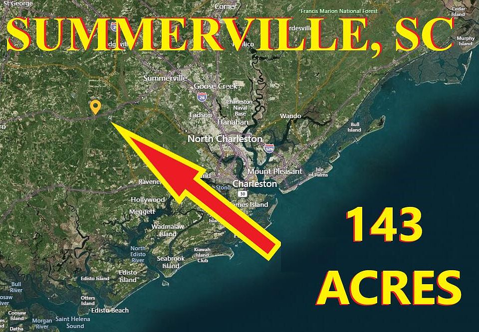 ****WANT LAND!!**** OVER 140 ACRES!!**** SUMMERVILLE AREA!!** (Just over 5 miles from ''Summers Corner'' Area, (A planned 8,000-home community with soon to come PUBLIX Shopping Center!! --- Currently zoned (SR) Suburban Residential. **Ideal for residential development!! *** Other possible uses: Industrial, Personal Estate, Recreation and Hunting (currently leased to hunt club, w/ approx. $2,000 income per year) -- Property is located ONLY 1.8 Miles from the Edisto River and only 10 minutes from Summerville! -- (Approx. 120 Acres on the North side of Hwy 17A and remainder on the South side of Hwy. 17A) - WATER & SEWER (Currently would need to be Well & Septic, HOWEVER city water & Sewer is coming this way soon, we are told within the next 1-2 years! Which makes this an AMAZING investment!****PLEASE NOTE! - ALL the information we have been able to obtain from the sellers, and any/all third-party organizations, including but not limited to city/county and other entities, has been posted to this MLS (under "Documents"). If you do not see the item in question (Plat, Survey, Wetlands JD's, Elevation Cert, Etc., it is because we do NOT have them. -- Unless specifically noted, these items in question, will be the buyer's responsibility, either during the DD period or post-closing. Thank you.