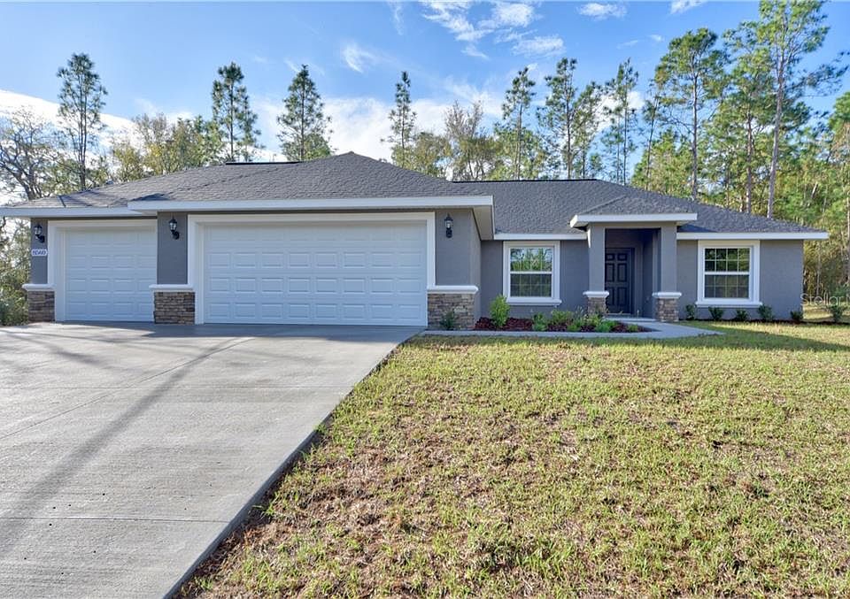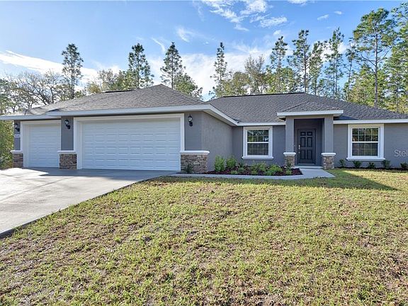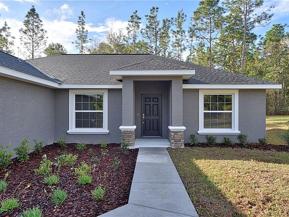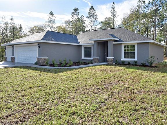 Under Construction. This spacious Redwood 3 model is a 3 bed, 2 bath, 3 car garage with a split bedroom plan. You enter into the large Living and kitchen area with cathedral ceilings and a separate office/den to your left. The roomy kitchen is the heart of the home w/solid wood cabinetry w/soft close doors and drawers, granite countertops, a large eat at island, SS range, dishwasher & built in microwave, a perfect place for family and friends to gather. The covered Lanai off the Living area is a quiet getaway. The master bedroom features trey ceilings, ceiling fan and ensuite master bath. The master bath is a dream bathroom w/wood cabinets, granite countertops, separate soaking tub, his & her sinks, lg walk in tiled shower, private water closet & lg walk in closet. The guest wing of the home has the 2 guest bedrooms and guest bath with wood cabinets, granite countetops, and a tub/shower combo. Home has either tile or luxury vinyl wood planking flooring with carpet in the bedrooms, inside laundry, WiFi ready garage door, and an in the wall pest defense system. The home is a golf cart ride to The Villages with all the amenities it has to offer but NO HOA. Hurry and pick your colors and finishes !