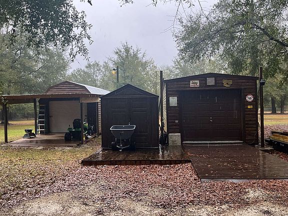 PRETTY 5AC LOT READY FOR HOME OR MH, WELL SEPTIC POWER POLE. CLEARED JUST ENOUGH WITH NICE OAKS AND OTHER TREES. RV HOOKUP WITH COVERED DECK, WALKWAY TO STORAGE /WORKSHOPS, BUILDING WITH SLEEPING QUARTERS. FENCED WITH NICE ENTRANCE