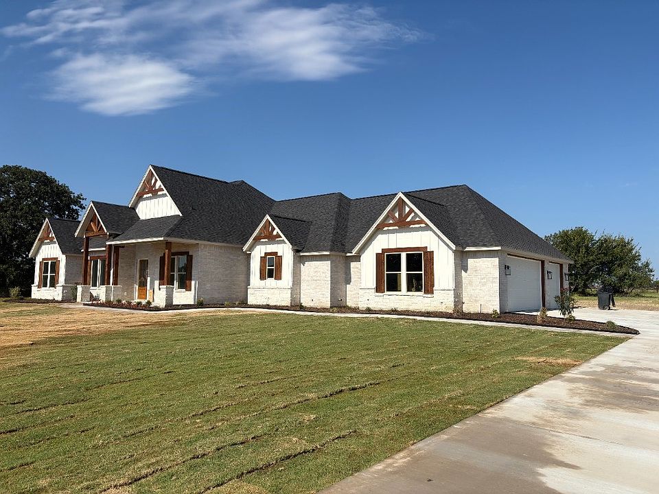 There are 3 or 4 different ways to purchase this Beautiful Custom Home, Brock ISD in Upscale Gated Community: 4-bedroom, 3.5-bath estate offers 3,331 square feet of luxury living, thoughtfully designed for style, comfort, and function. Split bedroom floorplan with his...her area custom closet design, separate vanities. Don't forget to check out the 2 extra walk in closets for storage. One is in the hallway between two bedrooms and one is in the main bathroom. But don't worry, you still have amazing closets in the bedrooms. Pantry designed for the person who loves to cook. Kitchen has a Double oven, gas cooktop, farm sink, trash cabinet, utensil drawer, but best of all the bottom cabinets. No more digging for the item in the back of the cabinet, as these shelves all pull out. Property Features: Vaulted Ceilings which enhance the open and elegant atmosphere, White Oak-Stained Kitchen Cabinets, gas fireplace, Custom Lighting throughout, Study with Designer Touches offering a serene space for work or creativity. Game Room ready for fun, media, or hobbies. 3-Car Garage featuring a Dog Wash Station—a rare perk for pet lovers. Our garage doors are insulated, and openers have a camera system and remote access from your phone. This home on 1 acre with water tap sells for $998,500, or with a pool, spa and decking for $1,250,000.00, and with an agreed upon price, 2 acres of water rights allow for a water well to be drilled. Two sources of water is an amazing and unique feature in Brock. You would have the opportunity to design your pool how you want and add amenities that are important to you. The best is that it is one loan and as a conventional loan, you can close while your outdoor world is being completed and money from the purchase price will be escrowed with the title company. 4.875% interest available