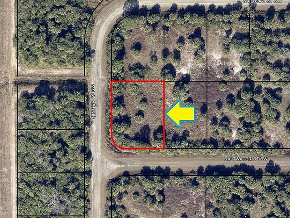 The 0.28 acre residential Corner lot is available in Port Malabar Unit 49 of Palm Bay. Located in the southwest buildable section, this lot is just 2.1 miles - 6 minutes to Westside Elementary School, 4 miles - 10 minutes to the Publix Supermarket, 15.1 miles - 35 minutes to Melbourne Airport, and 18.3 miles - 41 minutes to the beaches of Indialantic. From exit #176 of I-95 go west on Palm Bay Road for .7 miles, left on Minton Road for 3.3 miles, right on Jupiter Boulevard, quick left on DeGroodt Road to JA Bombardier Boulevard. Turn right on JA Bombardier for .9 miles, left on Madden Avenue for 1.3 miles, right on Sailboat Streeet for .2 miles, and left on Ginger Avenue. The lot will be on your left on the northeast corner with Saltwater Street.