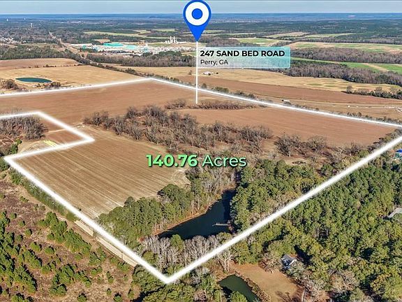 Outstanding prime piece of property for future development! Over 140 acres freshly surveyed and plat recorded. Formerly row crop and pecan farm, lease just ended. CUVA ends 12/31/2025. Nice flat cleared land with a large pond. Fronts Sandbed and Hwy 247.Railroad runs along 247 side. This land has been in the same family since the 1930s.Currently zoned Kings Chapel Elementary, Perry Middle and Perry HS. Super convenient to RAFB and Frito-Lay