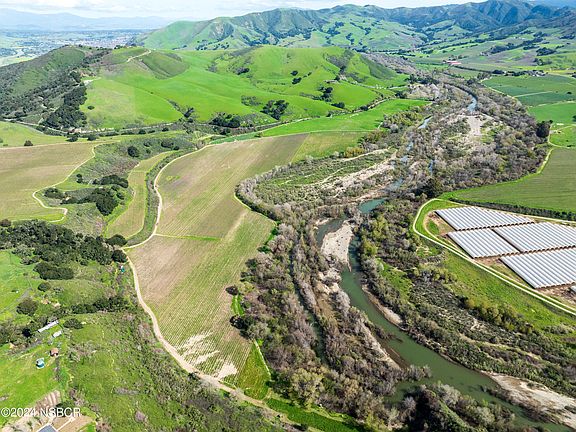 Nestled in the renowned, award-winning wine region of the Santa Rita AVA, this property, known as the North Vineyard, spans 105+/- acres, offering a sanctuary of tranquil beauty with several naturally formed terraces cascading from the Mesa ridge down to the Santa Ynez River's edge. Approximately 53+/- acres are dedicated to thriving vineyards. Varieties include Pinot Noir, Chardonnay, Grenache, Syrah, and Riesling, which yield the acclaimed fruit that contributes to the esteemed wines of Lafond Winery and Santa Barbara Winery. The ranch offers 2 wells, ensuring ample water supply, while meandering ranch roads invite leisurely exploration of the picturesque landscape. Revel in the enchanting sunsets, hike or ride in the expansive sandy riverbed, and then build your dream home or rustic cabin retreat. Meanwhile, there's a charming camping area, providing an opportunity to immerse oneself fully in the natural splendor of this vineyard retreat immediately.