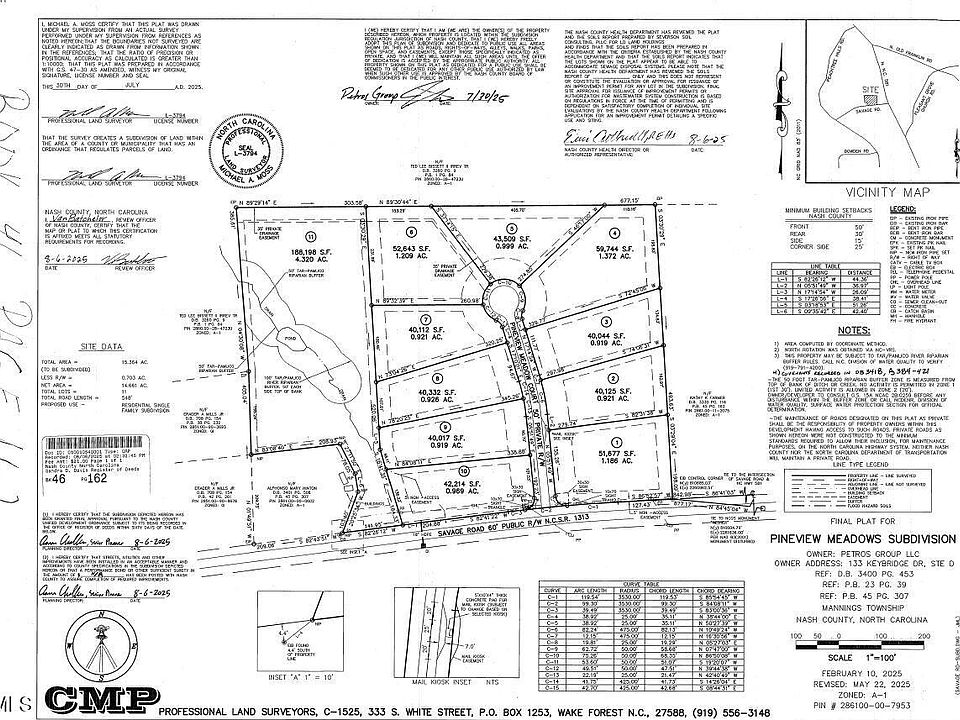 Great Finished Lot Opportunity for One Builder or A Builder Team! Pineview Meadows offers an excellent turnkey opportunity for builders in a fully developed, custom home community just minutes from downtown Spring Hope, NC. With a total of 14.6 acres, this neighborhood features 11 finished, single-family lots averaging 1.33 acres each, and each lot will require individual wells & has 4-bedroom septic designs in place. Fully approved with all infrastructure installed (roads, entry monument, mail kiosk, stormwater pond, Spectrum & Duke utilities, etc). With covenants recorded and HOA management established through PPM, these permit-ready lots are shovel ready. Most sites can accommodate swimming pools, and the location provides easy access to US Hwy 64, just 23 minutes to Zebulon and 40 minutes to Raleigh and Wake Forest—making Pineview Meadows a peaceful yet connected setting for your next residential project. Tax Value has not been reassessed for developed lots, please review Nash County tax website for individual tax value.