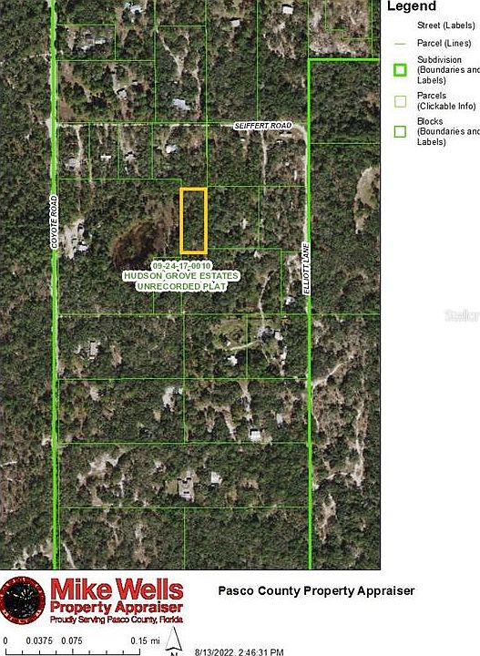 Located in Hudson Grove Estates. You should come see this private piece of land. It is the perfect place to build your dream home. High & dry - NO flood zone. Lots of privacy in quiet area. Conveniently located near HWY US-19 for easy traveling. Buyer to verify all zoning and building questions with the county.