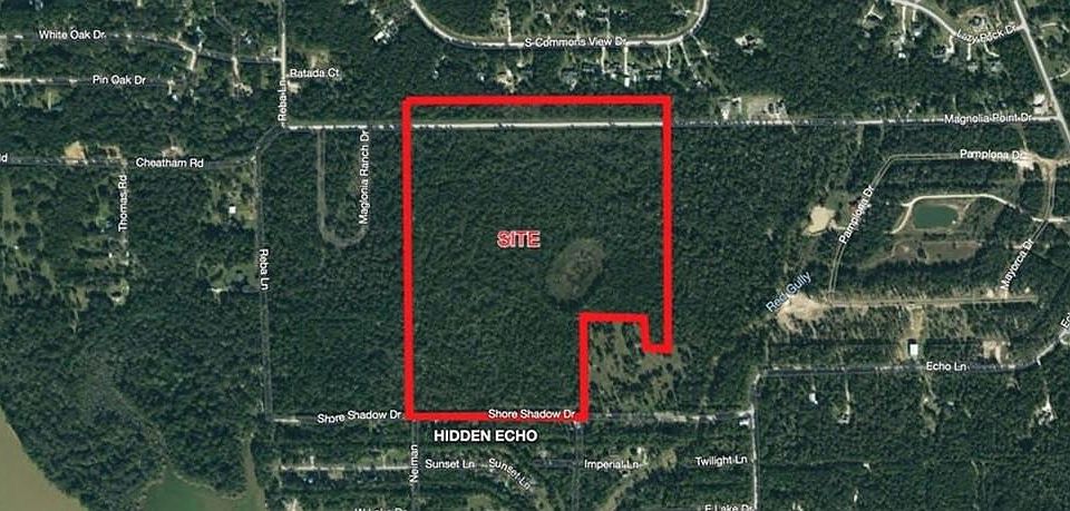 80 Acres of land on Shadow Drive in Huffman with access on both Shore Shadow Drive and Magnolia Point Drive. Excellent location with +/- 1,780 feet of frontage on Magnolia Point Drive and +/- 1,200 feet of frontage on Shore Shadow Drive. Property not located in flood plain, per FEMA maps. Non restricted. Located in rapidly developing area, less than 2 miles west of FM 2100, just 2.5 miles north of FM 1960, and approximately 7 miles from both US-69 and the new Grand Parkway.