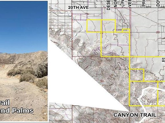 - One of a kind property with sweeping panoramic valley views, rare getaway opportunity- Build up to 7 private, hidden ranch estates- 1000s of Conservation and Protected Preserve acres surround this secluded ranch land- Take advantage of the surrounding hot mineral springs and 354 days of sunshine per year- Close to Palm Springs, 16 miles to downtown