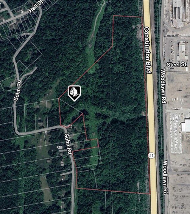 Just over 46 acres of land in Hopewell Township with over 2,000 feet of frontage on Constitution Blvd / Rt 51! Total of ~600 feet of frontage on Sohn Rd to the right of 1717 Sohn and to the left of 1721 Sohn. Property passed a perc test 15+ years ago. Great for recreational use or other possibilities. Oil and gas rights do not convey / previously sold. There's an overgrown path from Rt 51 that winds up the hill. Easier access from Sohn Rd.