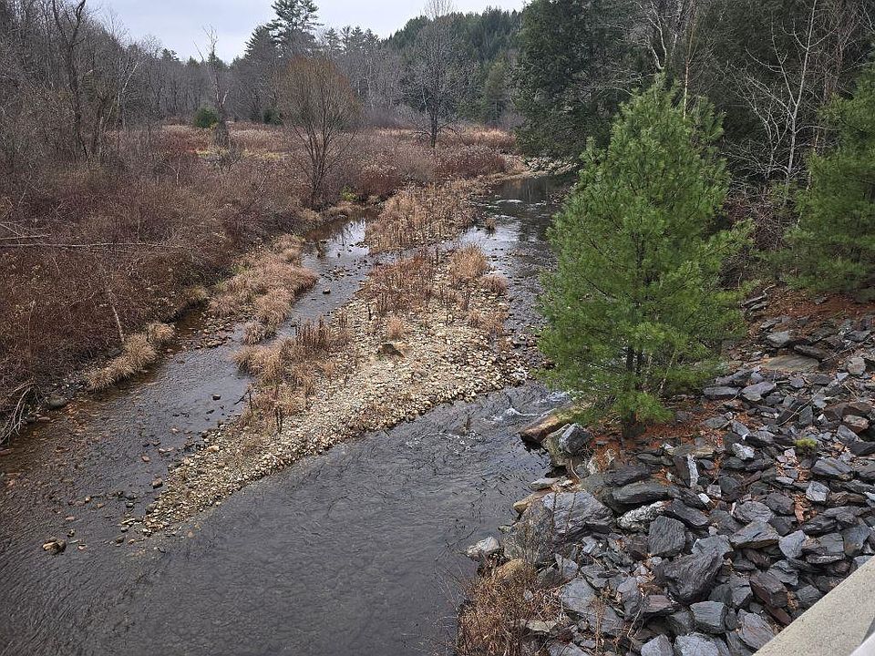 Excellent 13.44 acres with long frontage on Little Sugar River. A mix of open and wooded land with majestic pine trees Level building sites, small camping shed and over 900 ft of paved road frontage.